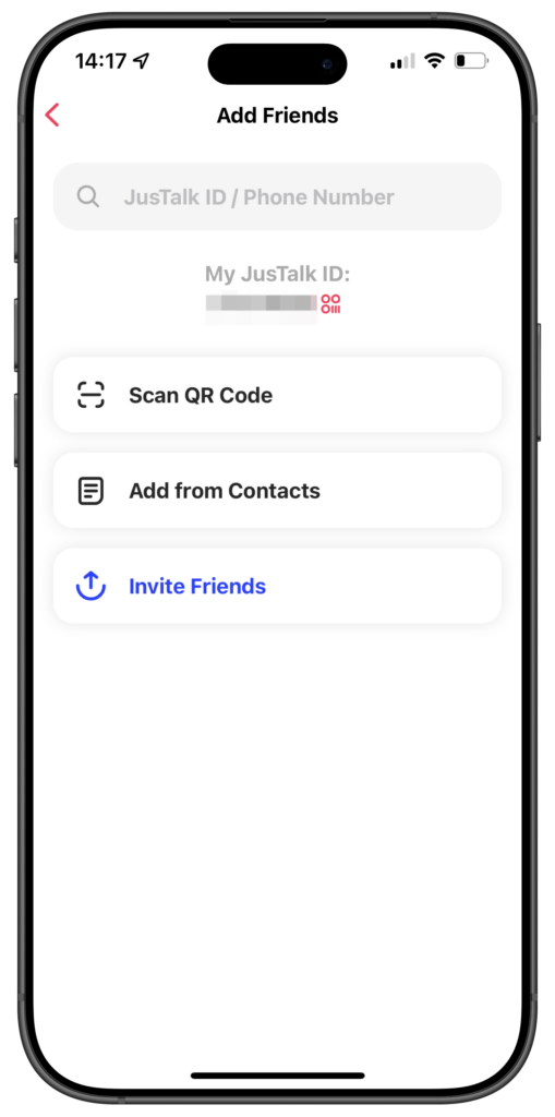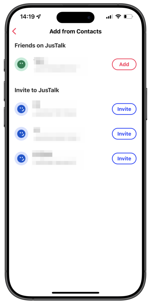 - Add friends who are already using JusTalk, or Invite them to join.
