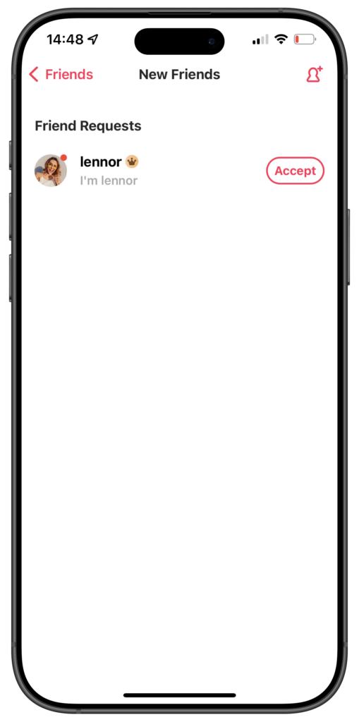 - Tap on Add to send the request.