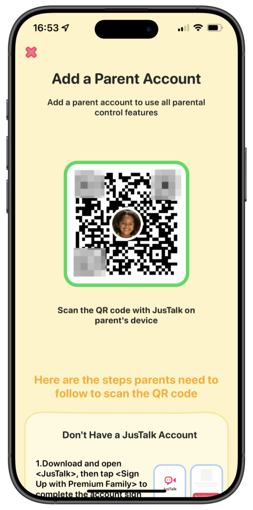 - Your parent account will now be successfully linked to JusTalk Kids.